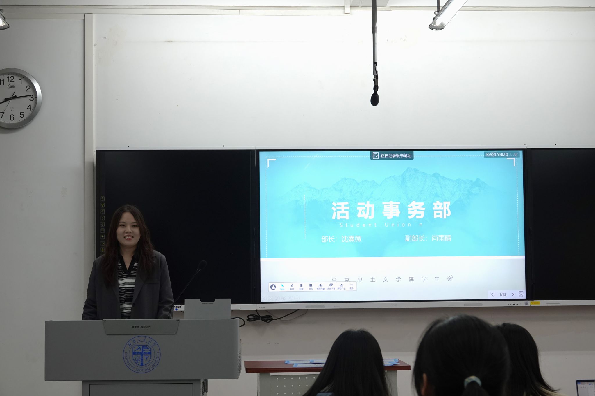 首先,杜晓林老师为大会寄语。在对新成员表示欢迎后,杜老师以学生会的良好成绩勉励新成员奋发向上。杜老师指出,在日常学习生活中同学们的言行要符合一名马院人的要求,要不断提升自己的政治素养和道德素养,要在参与活动的过程中学会做人、学会做事,要正确处理好学习与工作的关系。此外,在心态上,杜老师叮嘱新成员要端正态度,认真踏实对待工作,积极主动融入集体,主动思考,及时反馈,注意自己形象与素质,充分发挥榜样示范引领作用,争做优秀的学生干部。