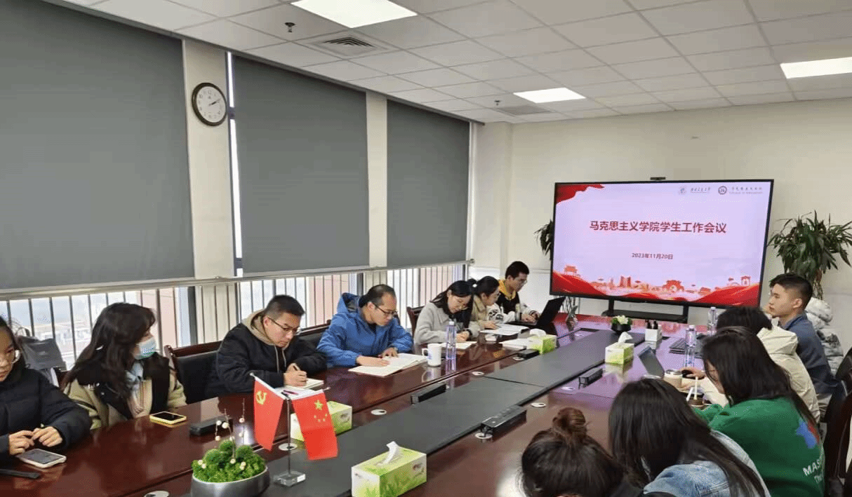 会后学院召开学生工作例会,学院党委廖军书记、学工组副组长赵晨、专职组织员杨雪莲、辅导员杜晓林参加,围绕学生党建、学生就业、学生安稳等工作进行研究和研判,找准问题,制定措施,精准发力,把学生育人工作覆盖全面,落到实处。
