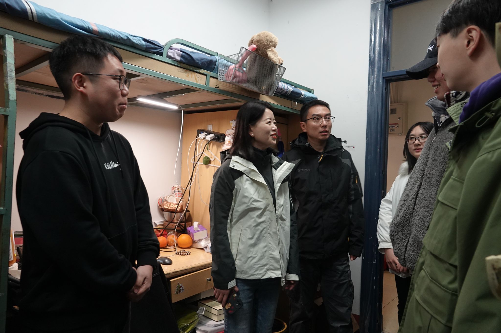 2024年元旦佳节即将来临之际,为深入了解学生动态,提升学院同学的凝聚力和归属感,1229日和1230,学院党委副书记邓秀芸、研究生辅导员赵晨、本科生辅导员杜晓林和高楠共同走访学生宿舍,看望慰问学生。