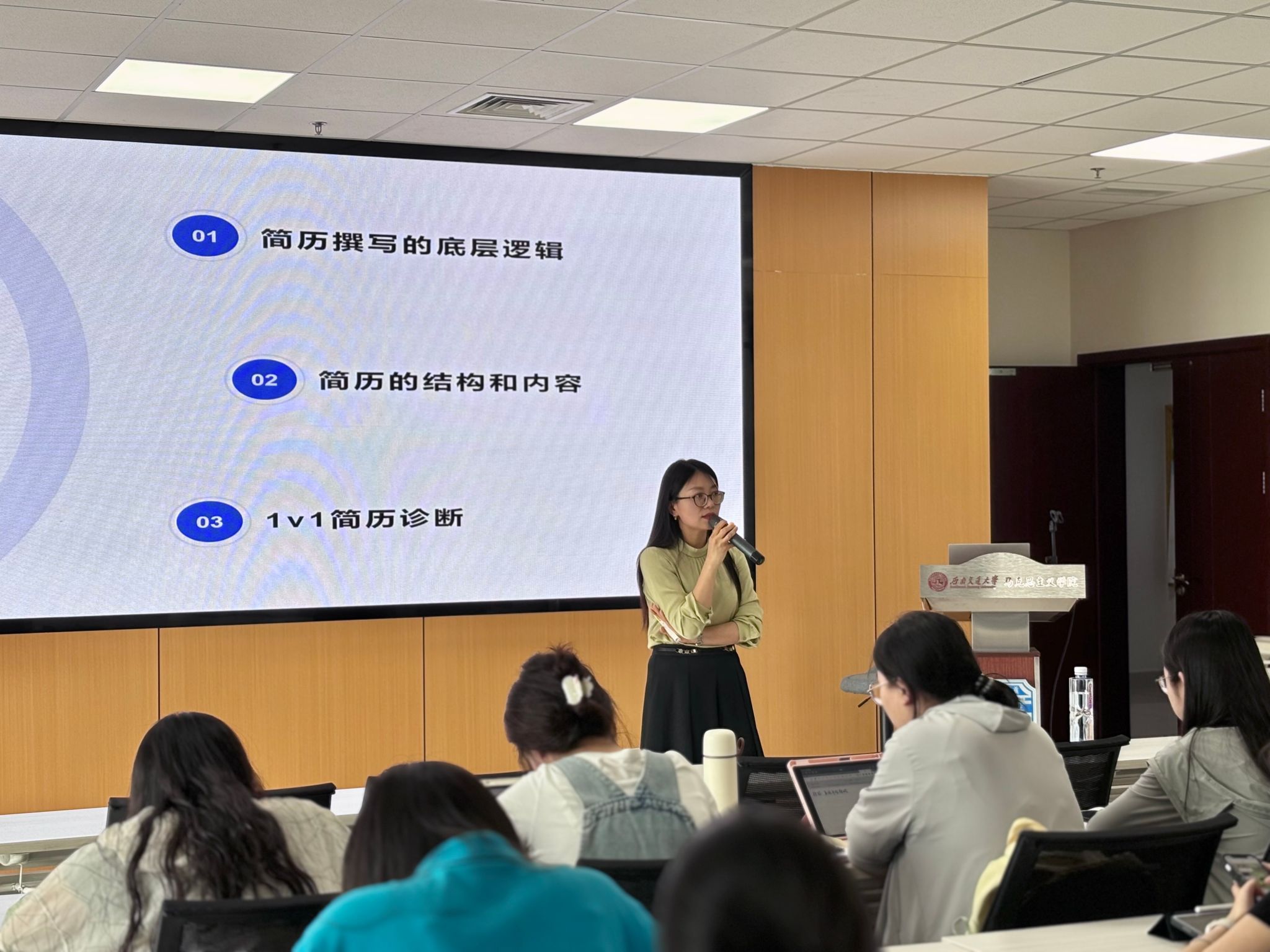 为切实提升毕业生的就业竞争力,提高学生的简历制作能力,奠定良好求职基础,由党委学生工作部(学生资助管理中心)主办,大红鹰会员登录中心承办的“启航赋能,就等你来——就业能力提升训练营”之简历制作指导讲座于5月21日下午在X31325报告厅举办。此次讲座邀请到西南交通大学招生就业处生涯教育与就业指导科科长陈曦轶主讲,学院党委副书记邓秀芸主持,学院朱方方、杨雪莲以及辅导员和院内外60余名学生参加。