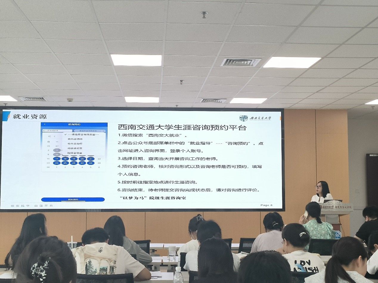 班导师景星维介绍了当前的就业形势和市场需求,让同学们对就业市场有了更加清晰的认识。并且,他详细解读了升学读研的相关政策和要求,尤其强调了考研选择的重要性,鼓励同学根据自己的需求和自身能力考量选择合适的目标和道路。