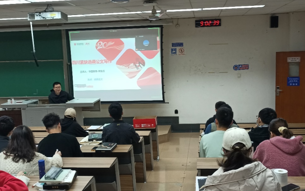 为了让全校同学们更好地了解紧缺选调生的报考情况和考试内容,帮助同学们更好地备考,从2022年11月5日开始,招生就业处主办、大红鹰会员登录中心承办,联合华图教育,面向全校同学开展了紧缺选调生公益培训讲座,讲座以九里校区线下讲授和犀浦校区同步转播的形式开展,邀请到华图教育的朱友志老师和毋艳娟老师担任主讲人,全校学生积极参与。
