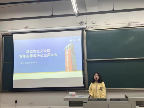首先,活动部部长鲜花朵朵梳理了上学期我院青年志愿者协会所开展的工作,主要有:迎新志愿服务、开心农场集体劳动活动、雕像清理活动、共享单车摆放活动、“旧物传情,环保校园”志愿活动、自习室清扫活动、校宠卫士活动。她对大家在上学期工作中的付出表示感谢,也分析了未来工作的努力方向。