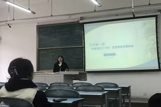 3月3日15:00,思政2020级本科生“青春践行二十大”主题班会在X2429准时召开。首先,辅导员杜晓林老师向同学们展示了升学毕业去向选择,为同学们职业生涯规划做了重要的指导。紧接着,杜晓林老师就保研、考研、考公、出国、就业等选择做了具体的介绍,同学们更清晰地了解了这些选择的往年情况、具体流程、相关条件和注意事项。 最后,杜晓林老师对本学期工作安排做了详细的说明,提醒同学们关于选课、第二课堂、创新学分、请销假和宿舍安全等相关事宜。
