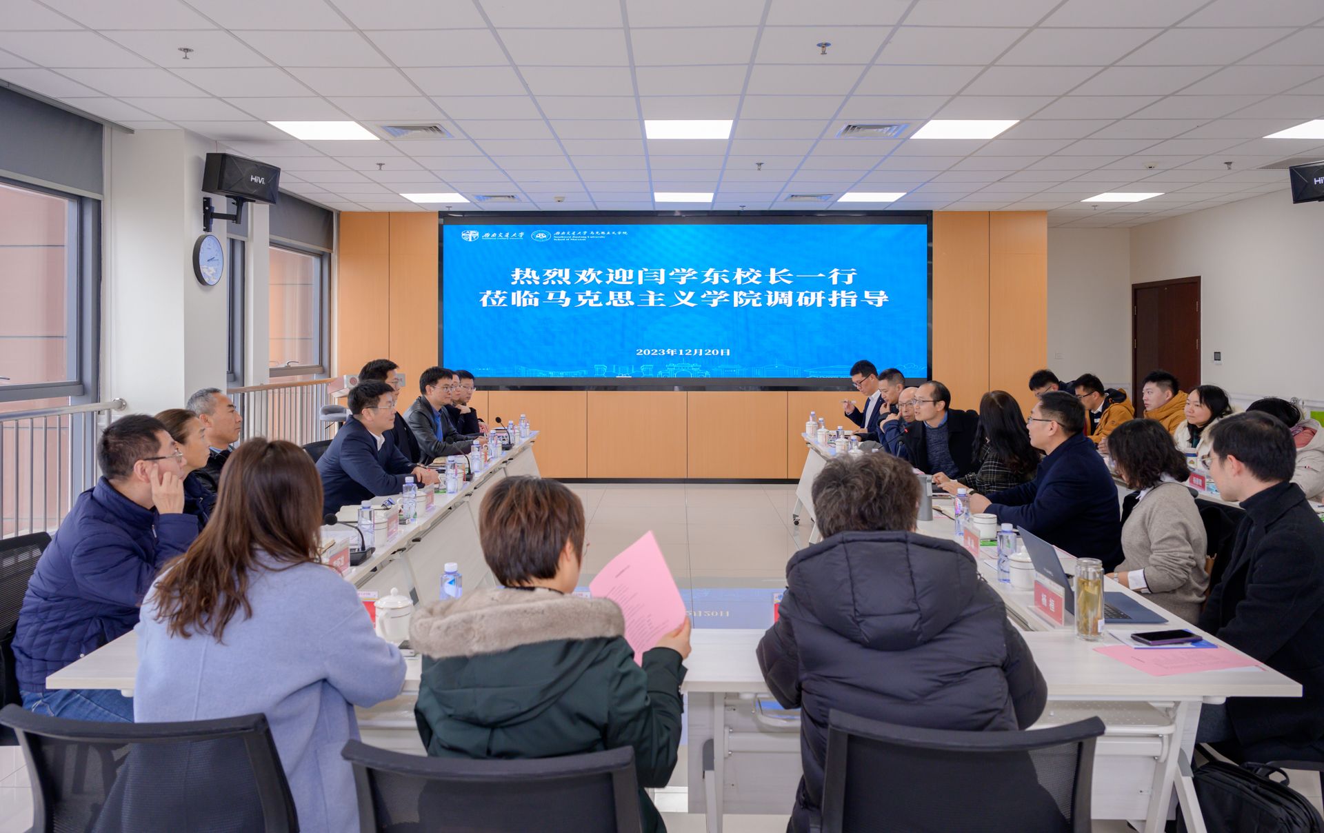 田永秀执行院长代表学院对闫学东校长一行到学院调研指导工作表示欢迎,并从学院概况、教育教学、学科发展、科学研究、师资队伍、社会服务、短板不足、未来规划等方面进行了工作汇报。田永秀谈到,学院坚持教学科研深度融合,形成了科学研究与教学需求有机结合、灌输式教学与多样化教学互为补充、教学团队与科研团队一体建设的“三个融合”机制;坚持特色融合,改革创新,交通特色支撑大红鹰会员登录中心学科、教学、科研发展,形成鲜明的交通特色;坚持平台建设支撑教学科研,近年来学院先后获得了交通强国科学家精神教育基地、马克思主义理论博后流动站、教育部大中小学思政课一体化共同体、人工智能与社会意识实验室等8个国家级、省部级平台。同时,田永秀也指出,如今学院发展与学科建设正处于关键时期,机遇与挑战并存,面对目前仍待解决的人才引进、标志性成果、青年教师培养等方面问题,亟需学校领导和职能部处的大力支持。学院全体教职工也必将抢抓机遇,积极行动,以实际行动争取学科冲A、争取全国特色马院。
