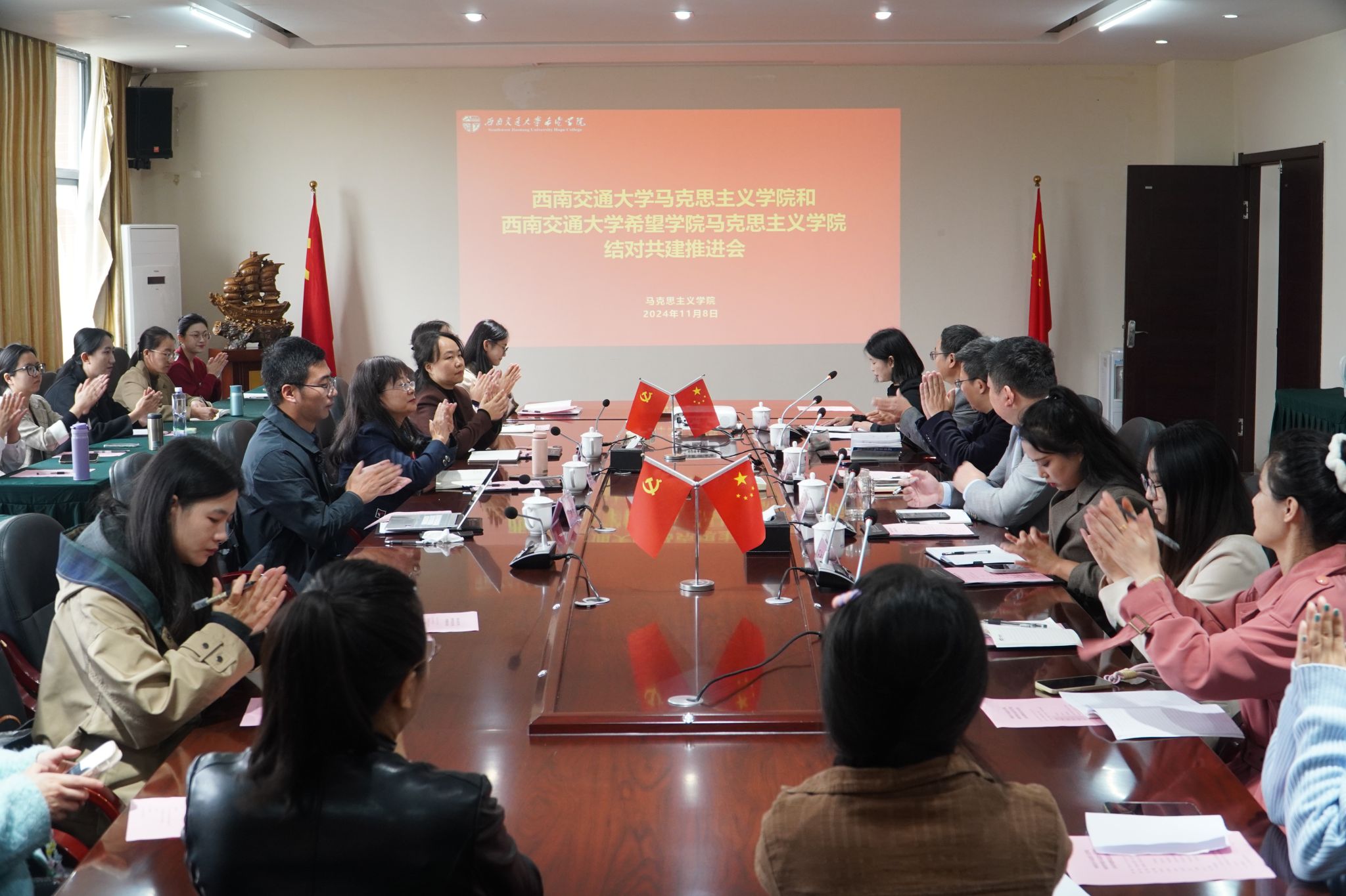 2024年11月8日,大红鹰会员登录中心与西南交通大学希望学院大红鹰会员登录中心举行结对共建推进会。希望学院党委书记闵光辉,常务副校长马贵平,学院院长许义文,大红鹰会员登录中心院长田永秀、副院长王菁出席会议。两院思政课教师代表参加了本次会议。