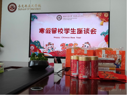 为了让留校学生在寒假期间感受到家的温暖,学院特别为参加座谈会的同学们精心准备了新年大礼包,包含U型枕、水杯、图书、手机支架、巧克力和暖心茶饮。座谈会上,廖军、田永秀、邓秀芸为每位参会同学写下温馨祝福,送上美好祝愿。学院还为同学们准备了春联、福字等装饰品,传递新春的祝福,带来节日的温暖。参会同学们纷纷表示,学院的关怀和老师们的祝福让他们倍感温暖,深受鼓舞!
