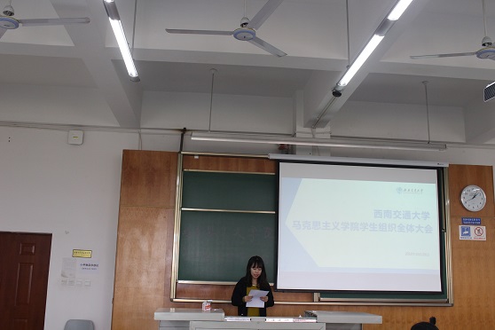 首先,研究生会副主席王亚梅发言。她表达了自己成为研究生会一员的喜悦并简要介绍了研究生会本学期的工作计划。她希望大家能在研究生会中增长见识、学有所获,共同为学院贡献力量。