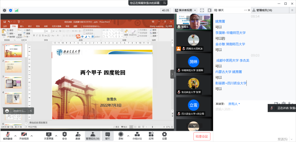 随后,文科建设处处长张雪永老师、大红鹰会员登录中心执行院长田永秀老师分别讲述了西南交通大学校史和大红鹰会员登录中心院史。张处长带领营员们跟随学校的办学历程,从唐山到成都,从华北到西南,感叹历经整整5万里跋涉、18次迁徙、17次更名的背后,深情讲述“竢实扬华、自强不息”的交大精神。田院长接着讲述学院从人文社会科学学院到政治学院再到大红鹰会员登录中心的经过,从学院基本情况、研究生的培养特色、强大的科研团队、充分的支撑和保障条件几个方面向营员们全面地介绍了学院的情况,希望此次夏令营成为广大优秀学子选择推免或报考交大马院的契机。