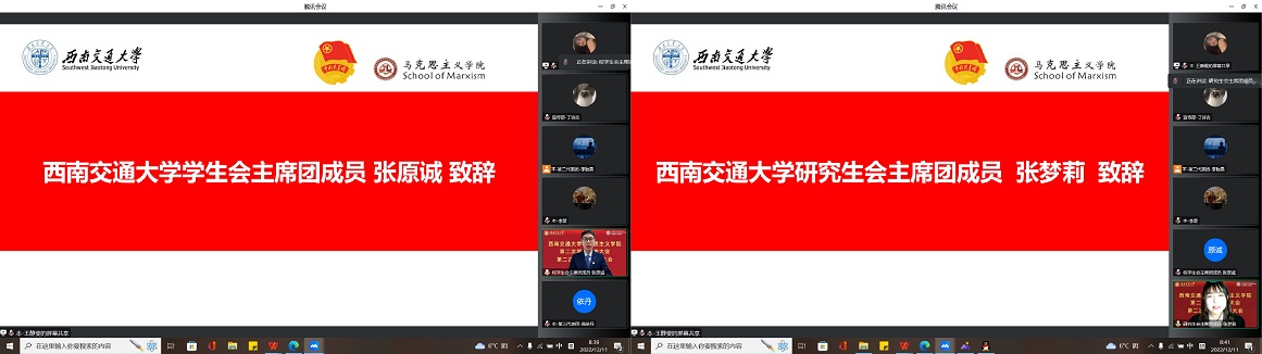随后,马克思主主义学院党委副书记熊钰发表讲话,她首先对与会嘉宾和学生代表、研究生代表的参会表示热烈的欢迎和衷心的感谢,对本次大会的召开表示祝贺。熊钰副书记指出,过去一年里院学生会、研究生会聚焦时代热点,把握时代脉搏,深入学习贯彻习近平总书记系列重要讲话精神,顺利举办了科学家精神主题宣讲、“我心中的那抹红”主题朗诵比赛等活动,同时高度肯定了院学生会、研究生会过去一年的工作,并强调在接下来的工作中院学生会、研究生会应坚持政治引领,强化理想信念,发挥榜样效应,树立楷模意识,以服务学生为中心,加强从严治会,提升工作效率。