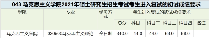第一志愿报考我院各专业非专项计划的考生,初试成绩达到下表中对应专业的成绩要求,方才具备复试资格。
